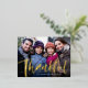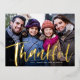 Thankful brush script family photo Thanksgiving Foil Holiday Postcard