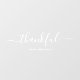 This custom window cling decal features a modern white calligraphy font with the word Thankful. Personalise with your family or business name.
