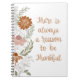Notebook features hand-drawn flowers and leaves, adding a touch of nature's beauty with a handwritten message that reads, "There is always a reason to be thankful," conveying a message of gratitude and positivity.