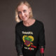 Celebrate the season with a touch of humor! This ladies’ t-shirt features a bunch of grapes, a couple of autumn leaves, and a clever twist: the word “Grapes” is crossed out and replaced with “Wine,” reading “Thankful for Wine.” Perfect for wine lovers, Thanksgiving gatherings, or as a playful gift, this shirt is available in multiple styles, sizes, and colors. Cozy, casual, and full of holiday cheer!