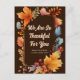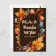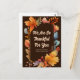 We are so thankful for you. Beautiful dark brown Thanksgiving postcards for a business to send to clients their gratitude during the holiday season. Customise with your company name inside the watercolor fall foliage of orange leaves. Custom message on the back for autumn marketing.