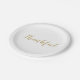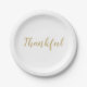 Thankful faux gold and white script calligraphy cute thanksgiving party paper plates.