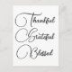 Thankful Grateful Blessed custom script typography simple elegant and cute Thanksgiving postcard.