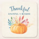 Thankful Grateful Blessed with Orange Pumpkin Square Paper Coaster