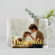 Happy Thanksgiving in classic and simple serif typography on country rustic barn yard theme. Add custom family photos and family name.