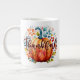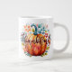 Thankful Jumbo Mug with fall flowers and a pumpkin in autumn colours. Perfect for Thanksgiving!