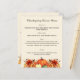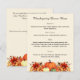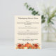 Cream coloured background decorated with orange fall flowers and pumpkins. Personalise and add your Thanksgiving menu on the front.
