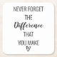 Thankful Never Forget The Difference That You Make Square Paper Coaster