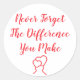Thankful - Never Forget The Difference You Make Classic Round Sticker