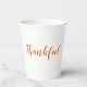 Thankful orange spice and white script calligraphy cute thanksgiving party paper cups.