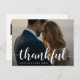 A modern and elegant photo thank you postcard designed to accommodate your favourite horizontal or landscape orientated wedding photo with "thankful" as a white calligraphy script overlay. Personalise with your names and/or wedding date beneath.