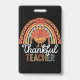 Thankful Teacher Blessed Thanksgiving School ID Badge