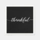 Add this touch of modern sophistication to your napkins. The word "Thankful" in a simple script handwritten style font with long tails. A trendy and chic look. Try it for special holidays like Thanksgiving and Christmas.