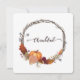 thankful thanksgiving wreath with an orange pumpkin, autumn flowers, vines, branches, grapes, fall leaves and lettering. orange and red autumn thanksgiving calligraphy illustration fall season themed.
