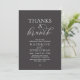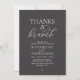 Elegantly announce your happily ever after with our modern classy wedding elopement celebration invitation card, "Thanks a Brunch". Tailored for couples continuing their love story, this invitation strikes a perfect balance of sophistication and charm, setting the scene for an unforgettable event. Featuring a modern contemporary script design, white text on charcoal grey background, it adds a touch of timeless grace to your special day, this invitation is a stylish expression of your enduring love.