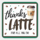 Thanks a Latte Teacher Appreciation Gift Square Sticker