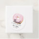 Cute favour tag for your child's doughnut theme birthday party featuring a pink doughnut with the text 'Thanks a "whole" bunch!' Customise this product by adding your child's name and birthday party date.