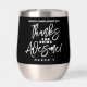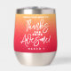 With the compliment, "Thanks for Being Awesome", styled in a dynamic, exciting handwritten font and paired with block lettering on alternating glittery sunrise and solid black backgrounds, this is the perfect thermal stemless wine tumbler for World Compliment Day (March 1) -- or any day that you feel like making someone's day, at a party, or even at the office!