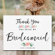 Wedding Day Bridesmaid Thank You Card. Watercolor Flowers with Black and white Casual Script.