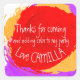Say thanks with this simple brightly coloured thanks stickers, ideal to add to gifts of thanks or for favour bags. Personalise with your own words of thanks and name, currently reads Thanks for coming and adding colour to my day Love Camilla. Paint round dabs splats and design by Sarah Trett.