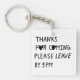 Thanks for coming please leave by 9 PM Key Ring