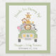 Thank your drive by baby shower guests with a bottle of wine! These fun gender-neutral wine bottle labels feature "Thanks For Driving By" on top, a cute illustration of baby jungle animals (lion, elephant, zebra, monkey and giraffe) piled into a safari vehicle and the mother's name and "Baby Shower" in coordinating army green script. You can also personalise the shower date.