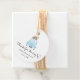 Add these adorable tags to your baby shower favours for your drive by baby shower. Featuring a blue vintage car with shipping boxes and flowers. Add your event, name and date.