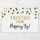 Thanks for popping by label with gold and black glitter pattern confetti.