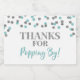 Thanks for popping by label with silver and light blue glitter pattern confetti.