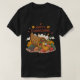 A vibrant Thanksgiving T-shirt design featuring a playful turkey holding a "Thankful & Blessed" banner, surrounded by colourful autumn leaves, pumpkins, and cornucopia elements. The design radiates warmth with rich tones of orange, red, and gold, encapsulating the festive spirit of gratitude and togetherness.