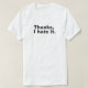 Grab this "Thanks, I hate it." funny saying tee shirt for awkward social events and cringeworthy moments. Show your sense of humour by wearing this basic cool text style. for Black and White Contemporary Art Lovers. I'm sure that it can spark many conversations and will help with breaking the ice. This funny awkward design is a great gift idea for employees, colleagues, coworkers, managers, supervisors, friends, or family, and also makes a great birthday, holiday gift, or Christmas present. Celebrate any occasion with a touch of personality and comfort! (YOU CAN CHANGE AND CUSTOMIZE THIS TEXT DESIGN OR ANY TEXT YOU WANT IN TEXTIFY STORE!).