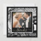 Thanks with your event photo, against an elegant modern black and white linear design. Abstract black and white line tangle is an original digital piece of art. Every line has a curve and creates a curve. Champagne coloured typography. Back has a framed white square for your personalised words of thanks, against a muted version of the same art.