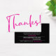 Thank you for your purchase customer discount card package insert in a relaxed casual and flirty font and modern style. Fully customize the text and social media icons for your brand. Thank your clients and customers for shopping with you by including this with your packages and products to say Thanks and to give them a coupon code for a future purchase to encourage repeat business and to find you on social media. You can add or remove social media icons (Twitter, Instagram, TikTok, Pinterest, Snapchat, Youtube, Facebook, LinkedIn) by choosing "customize further" and turning them on/off in the layers panel and you can edit the colors too!