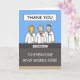 A cartoon group of three pharmacists behind their counter, accopanied by the text 'Thank you to everyone who works here'.
