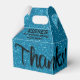 A fabulous party favour box covered with faux turquoise glitter, the word THANKS wraps around the front to the side. We've added text "KISSES for celebrating with me!" on the top -- it can be removed or changed -- and a perfect treat to fill the box -- some chocolate KISSES! LOTS OF GLITTER COLORS AVAILABLE! (1) Text, fonts, colours, sizes can be modified, just click PERSONALIZE link or CUSTOMIZE button. (2) MATCHING Surprise Party Invitations and more in our store ---> http://bit.ly/2Hq3AT6 <--- or on the link below.