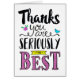 Say thanks with this unique hand-lettering style typography design with the message, "Thanks you are SERIOUSLY the Best." Design includes bird and flower accent on white background. Inside message can be customised to fit your personal needs but has this message: My heart is overflowing with gratitude to you. THANK YOU!