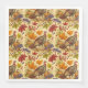 A wild turkey is surrounded with pumpkins, grapes, berries, nuts, and brightly coloured autumn leaves on a dark cream background. Perfect for Thanksgiving!