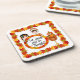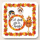 Add a whimsical touch to your Thanksgiving festivities with this coaster set featuring cute Indian girl, pilgrim girl, turkey and autumn leave border.