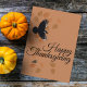 Thanksgiving Autumn Leaves Crow Fall Woodland Wind Holiday Card