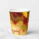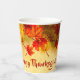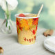 Exquisite customised Thanksgiving paper cup design showcasing a charming border of fall foliage against the backdrop of vintage parchment, thoughtfully adorned with an area designated for your unique message. The wording is entirely adaptable to your preferences, adding a personal touch to your seasonal celebration.
