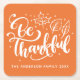 Be Thankful Script Harvest Orange Thanksgiving Square Paper Coaster