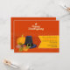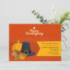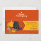 A cheerful, seasonal invitation to Thanksgiving Dinner. The orange background has a pumpkin, a Pilgrim's hat and fall leaves with acorns. The yellow, side banner holds your party information. <br/><br/>The card is easy to customise with your wording, font, font colour, paper shape options and choice of six paper types.<br/><br/>Not exactly what you're looking for? All our products can be custom designed to meet your needs at no extra charge.<br/><br/>Simply contact us at askpixieprints@aol.com.<br/><br/>Coordinating products available: Just ask us!