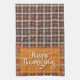 Happy Thanksgiving Brown Plaid kitchen towel.