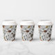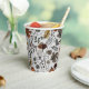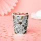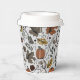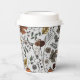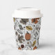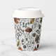 These custom Thanksgiving paper cups feature a Fall harvest scene of colourful pumpkins, cow skulls adorned with roses, acorns and autumn foliage against an elegant soft grey background.