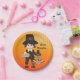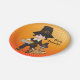 Cute Pilgrim with Turkey and Pumpkin pie on Orange Stripes Thanksgiving paper plate