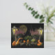 Thanksgiving Day Scene With Bench and Fall Harvest Holiday Postcard