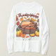 A cartoon picture of a baked turkey and pumpkins are on the front of this long-sleeved t-shirt for cool weather. Below the picture is the caption, "The turkey is the designated driver." Have fun with this shirt. For men or women.
