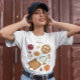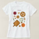 Whimsical and modern Thanksgiving theme t-shirt featuring illustration of turkey dinner. The text says "thankful."