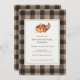 Thanksgiving Dinner invitation featuring a classic brown buffalo plaid background and a cornucopia. T. Customise with your information. Click "click to customise further" to change the font style, size, or colour.