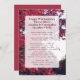 Fun family Thanksgiving dinner menu template with place for each contributor’s name next to the food. Red leaves background and dark maroon red text with title at the top to include family name, or names, with year date. List all food in paragraph form with name of chef or baker next to each, which is optional. Customise as you please and use this menu for any gathering in the fall. Reverse is solid red.